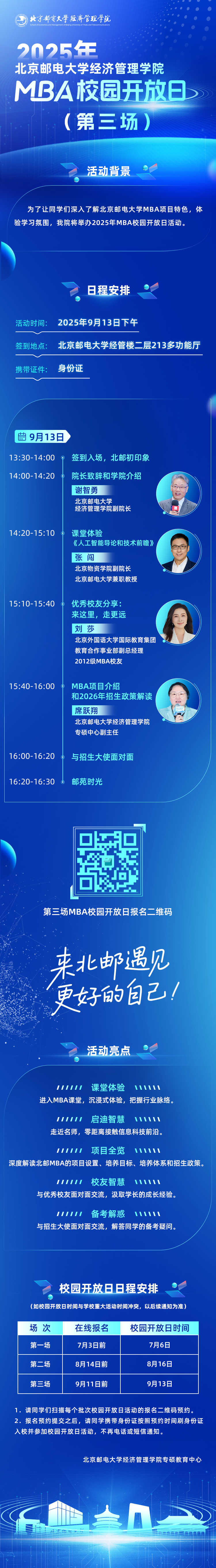 2025年北京邮电大学经济管理学院第三批MBA校园开放日即将举行