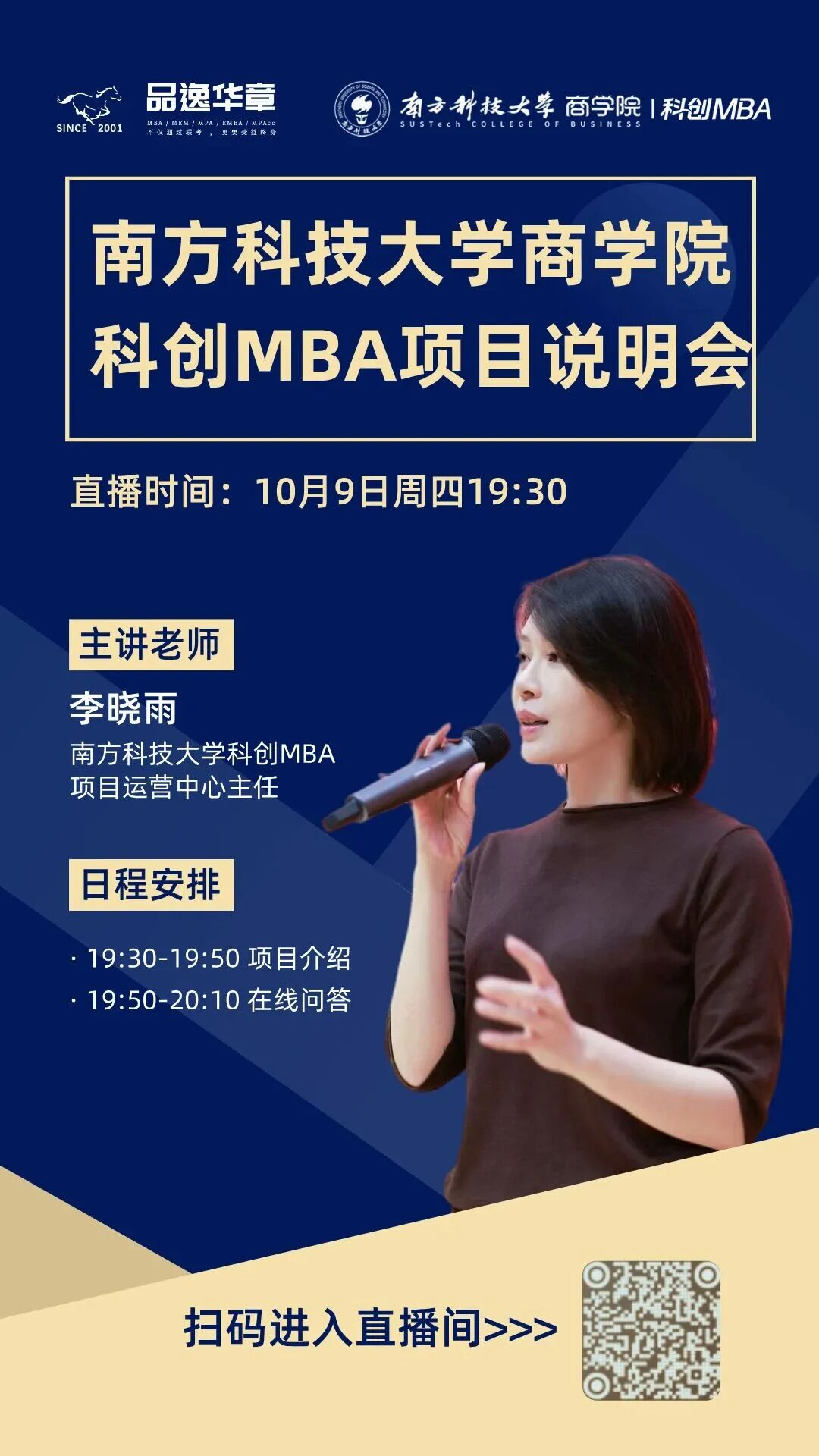 10月9日直播丨南方科技大学商学院科创MBA项目说明会