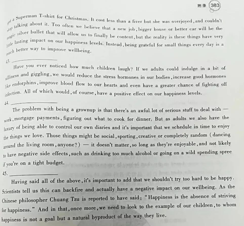 从外文报道中选出的四篇文章,每篇文章5个题,一共是20道题。每题2分,共40分。这部分我们一定要力争得高分,40分我们得28分,就属于高分了。