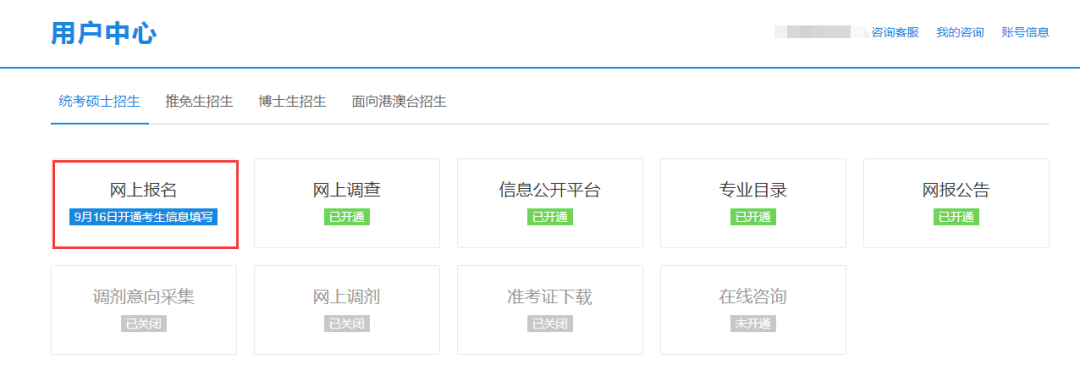 登录后,考生点击“网上报名”进入网上报名。考生在仔细阅读用户须知,并点击“确认”后,即可进入“网上报名平台”。