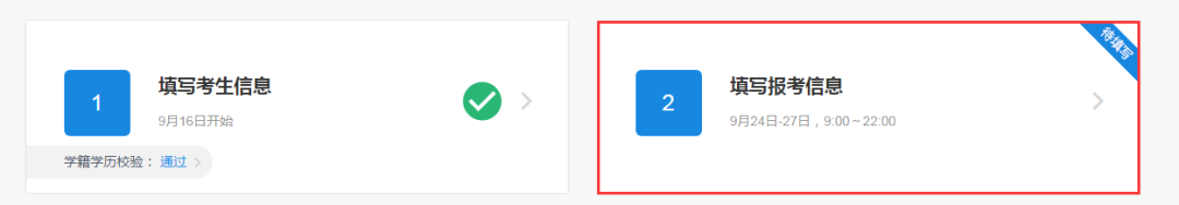 正确填写以上信息后,考生点击“下一步”即进入学历校验。一般情况下,学历校验可以快速通过。如遇网络拥堵等特殊情况,将出现“进行中”的状态,考生也可以继续进行下一步的填写。