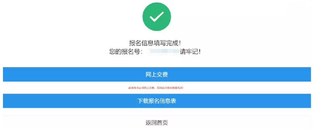 仔细核对报考信息,生成报名号。考生必须记住报名号,现场确认时需要用到。