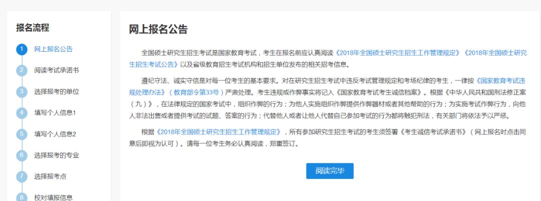 8-1、阅读“网上报名公告”并点击“阅读完毕”