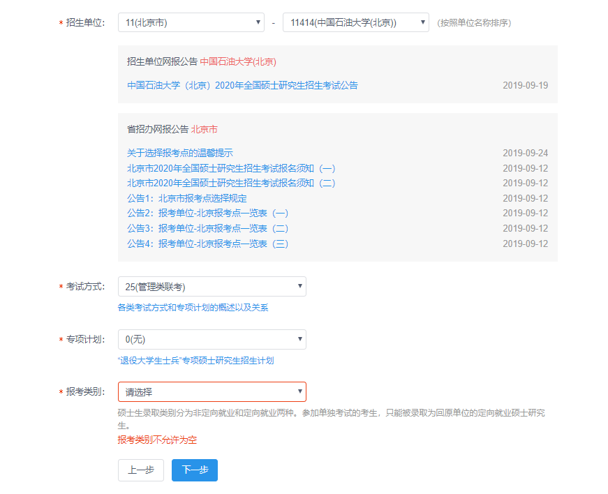 如选择北京地点考试,请务必选择(1164)中国石油大学(北京)报名点;选择外省考试地点(报名点),自行查看各省相关通知。