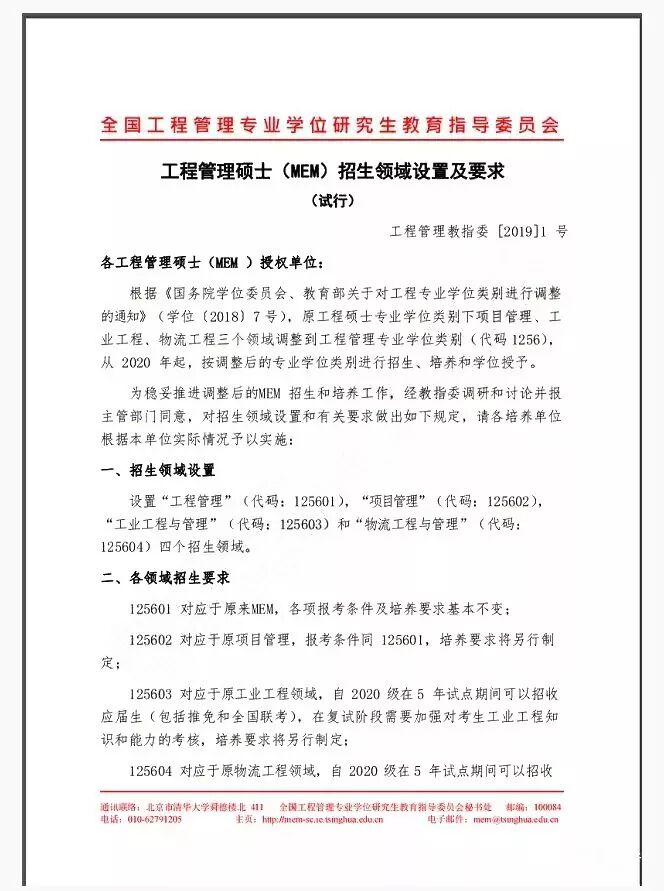 此次说明会发布了一份重磅文件《工程管理硕士(MEM)招生领域设置及要求(试行)》,在招生领域设置、各领域招生招生都做出的新的规定。
