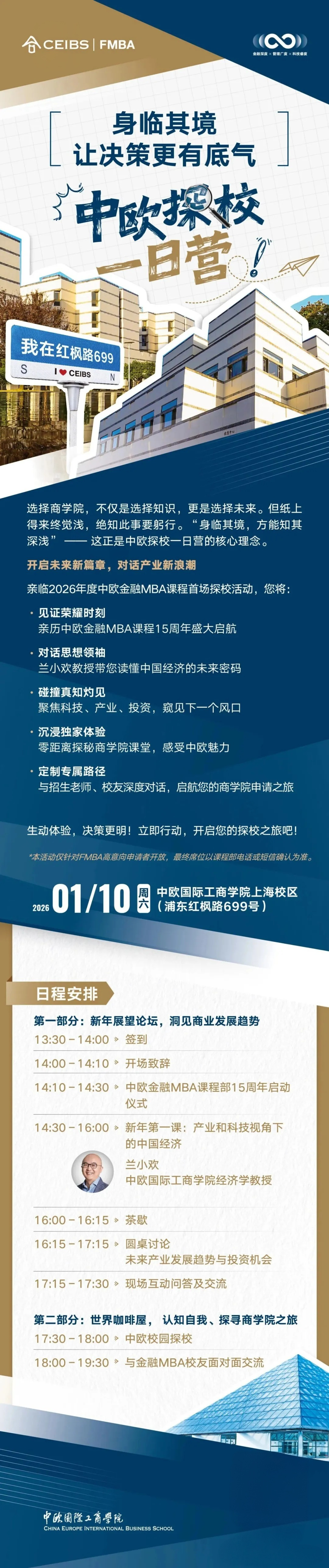 【报名中】中欧FMBA2026开年第一课+探校一日营,开启新年成长之旅!