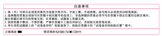 考试必须用2B铅笔涂写,其他部分必须用黑色中性笔书写!!!