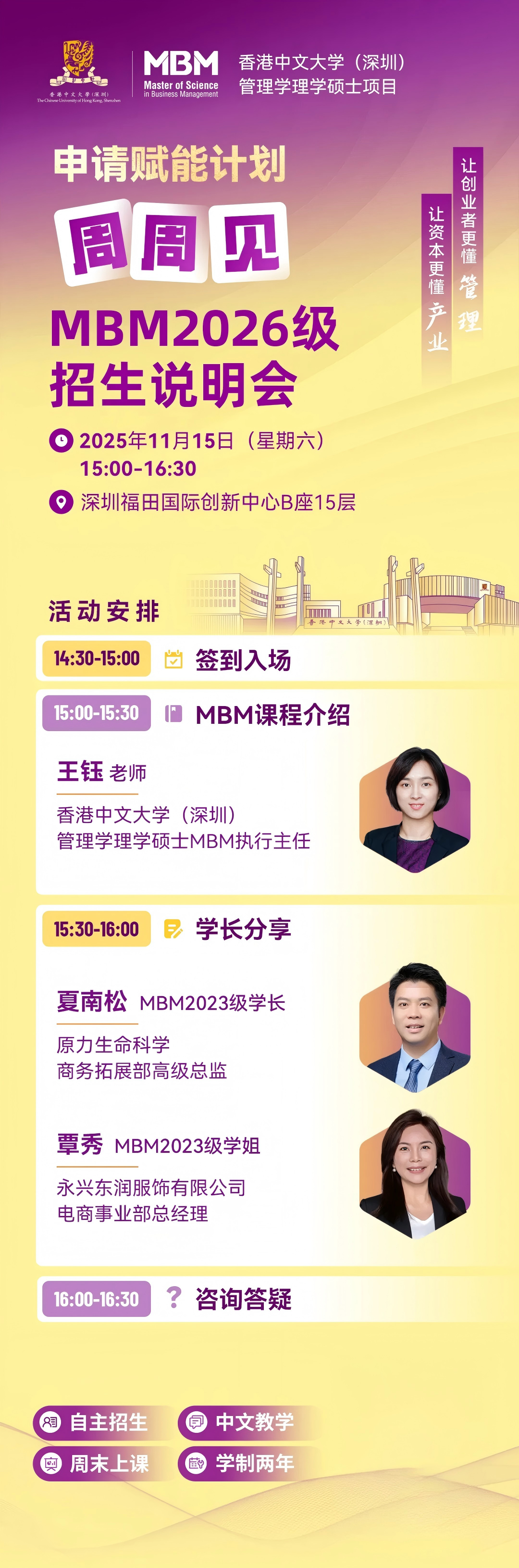 活动提醒 | 11月15日 ,港中文深圳MBM2026级招生说明会,等你来!