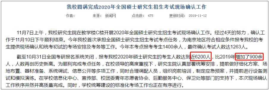 东北农业大学研究生院发文,2020年全国研究生招生考试报考人数再次大幅增加,我省硕士研究生报名人数比去年增加了1万多人,增幅为14.2%。