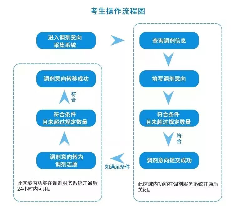 考生可在调剂服务系统开通24小时内,在满足条件的前提下,将调剂意向一键转为调剂志愿。