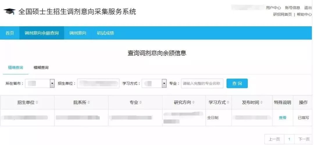 3、调剂服务系统开通后,调剂意向采集服务系统的查询调剂意向余额信息和填写调剂意向功能将关闭。考生可以在调剂服务系统查询余额信息。