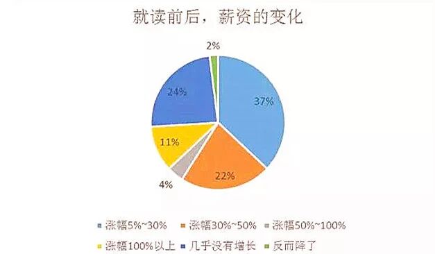 74%的薪资都增长了,22%毕业后薪酬涨幅30%—50%,其中15%的毕业生涨幅在50%以上。