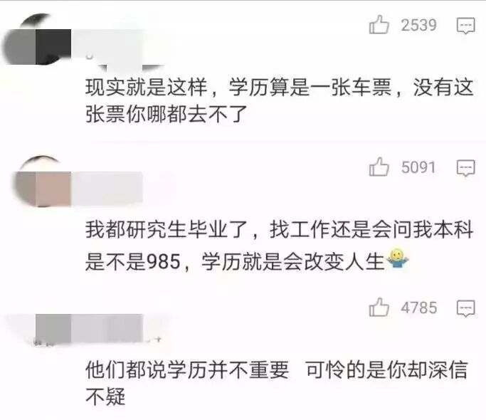不少网友表示现实中学历是很重要的
