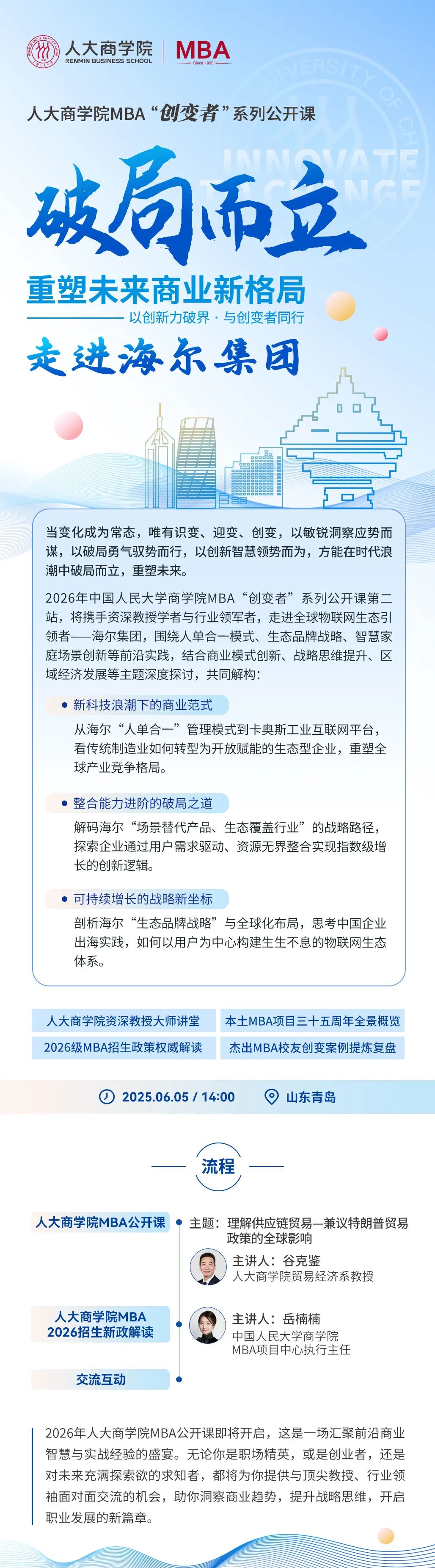 走进海尔集团 |2026人大商学院MBA“创变者”系列公开课第二站,6月5日青岛见