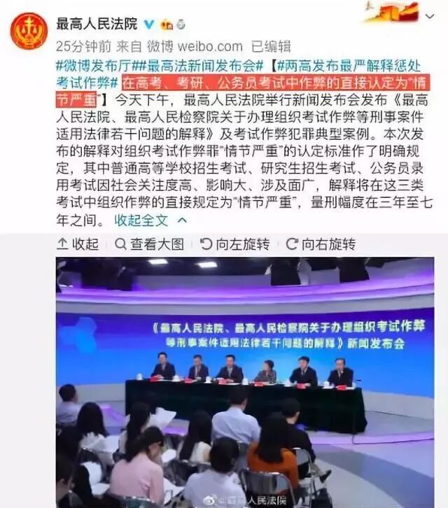 近段时间,最高人民法院、最高人民检察院联合对外发布《关于办理组织考试作弊等刑事案件适用法律若干问题的解释》。