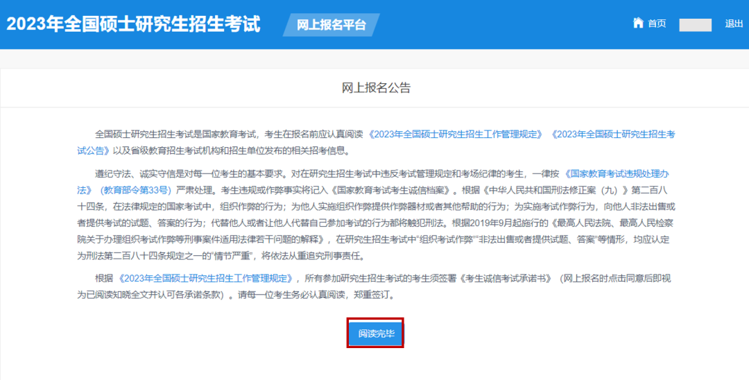 1.请依次点击【填写报考信息】、【下一步】、【阅读完毕】、【同意】。