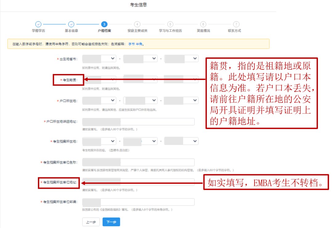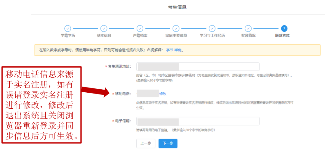 15. 填写完毕后,请点击下一步,进入【联系方式】。此项,请务必如实填写。