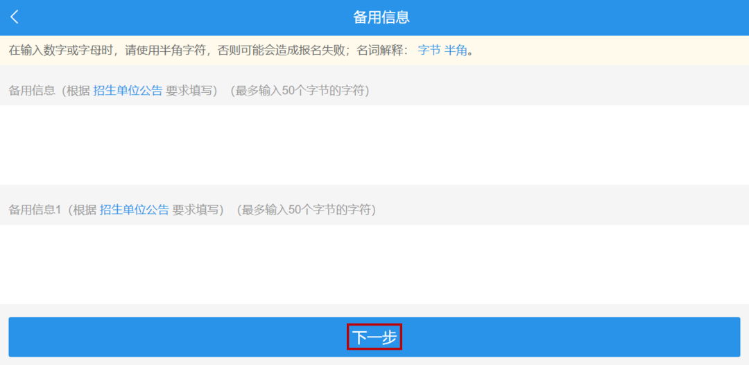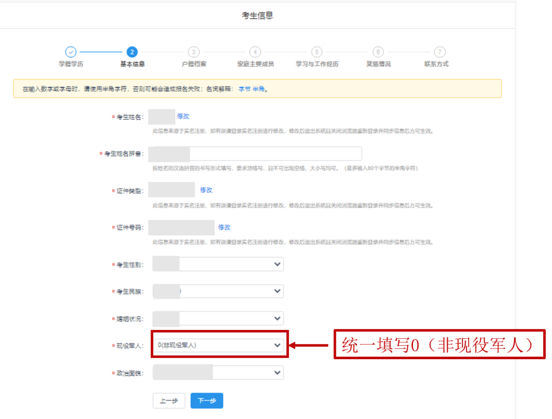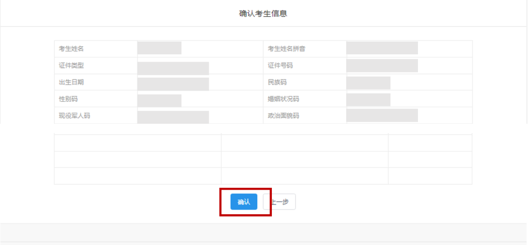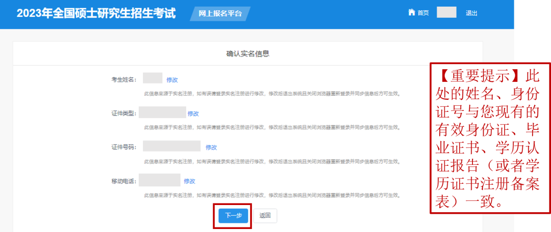 备注:如果您要修改身份信息,请完成接下来所有步骤之后,再返回修改,否则报名信息视为作废。