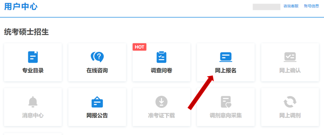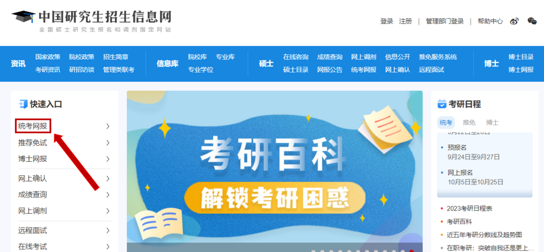 1.登录中国研究生招生信息网 http://yz.chsi.com.cn ,点击【硕士统考】进入网报平台。