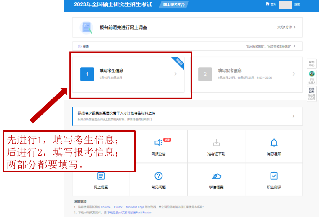 4. 考生未完成网报、信息项填写错误等情况,将导致不能打印准考证、笔试无效、无法注册学籍等后果。