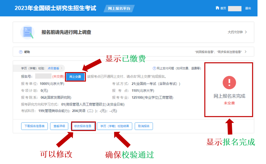 2. 因更改姓名或身份证号导致学历校验未通过的考生,请和EMBA中心招生老师取得联系,并根据北大研招办要求补充审核资料。