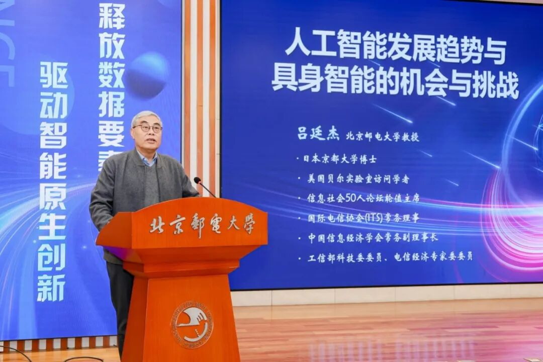 吕廷杰教授以“人工智能发展趋势与具身智能产业机会”为主题,深入分析了AI从弱智能向通用智能演进的关键路径与行业机遇。吕教授同时展望了智能体互联网的发展趋势,认为空间智能与世界模型的发展将推动机器对机器的通信需求,催生低时延、高可靠、上行带宽需求突出的新型通信网络。